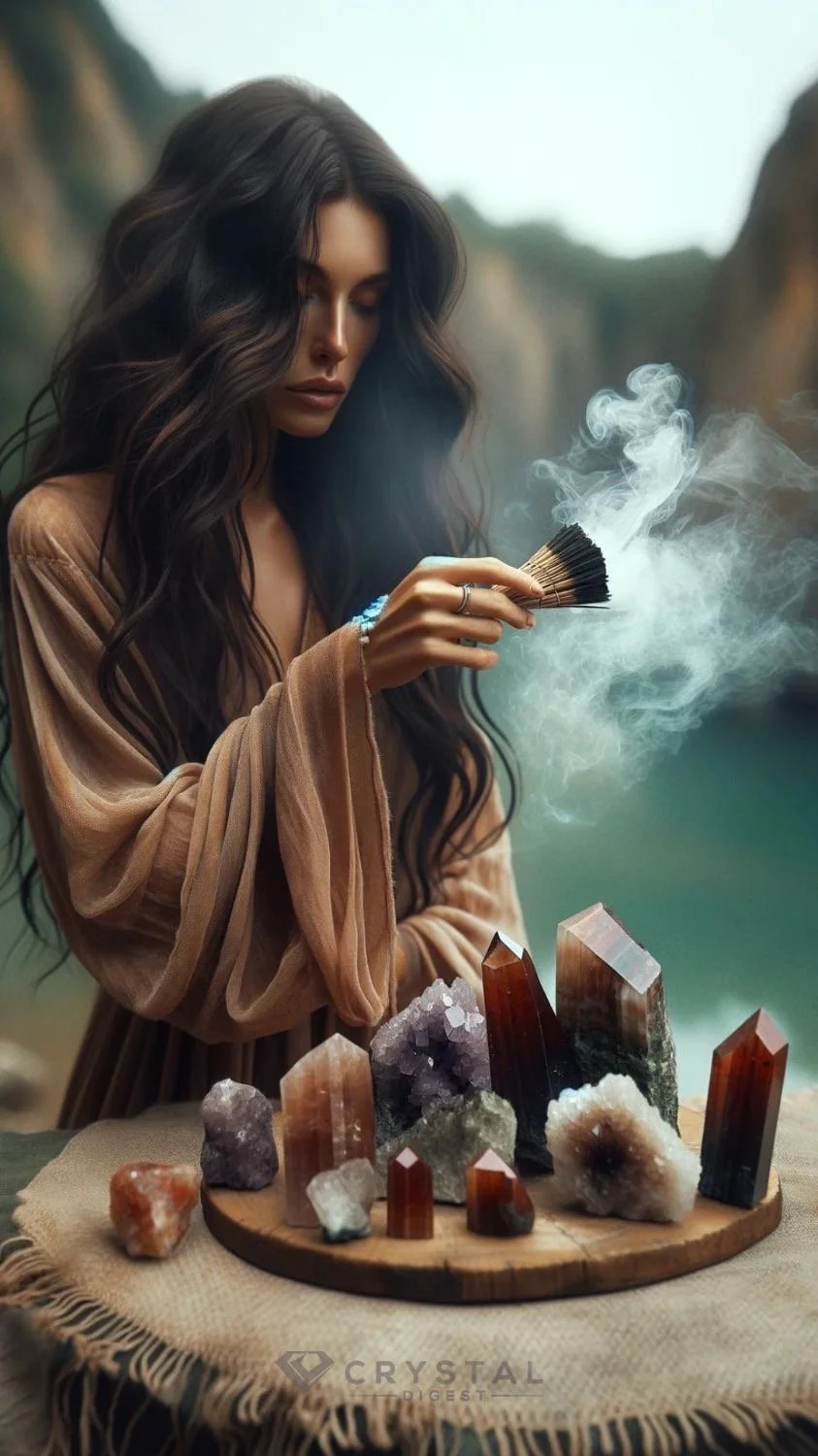 Esse ritual é um verdadeiro reconectar-se com a essência da natureza: a força da terra, refletida nos cristais, e a suavidade da luz, manifestada nas cores, unem-se em um cuidado que transcende a estética.